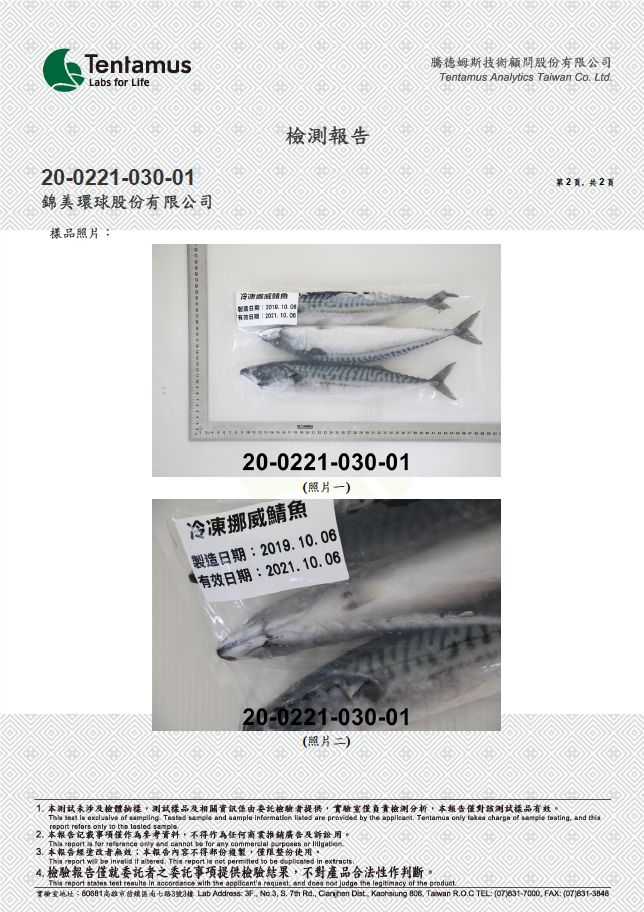 真空挪威薄鹽鯖魚片-檢驗報告p.2