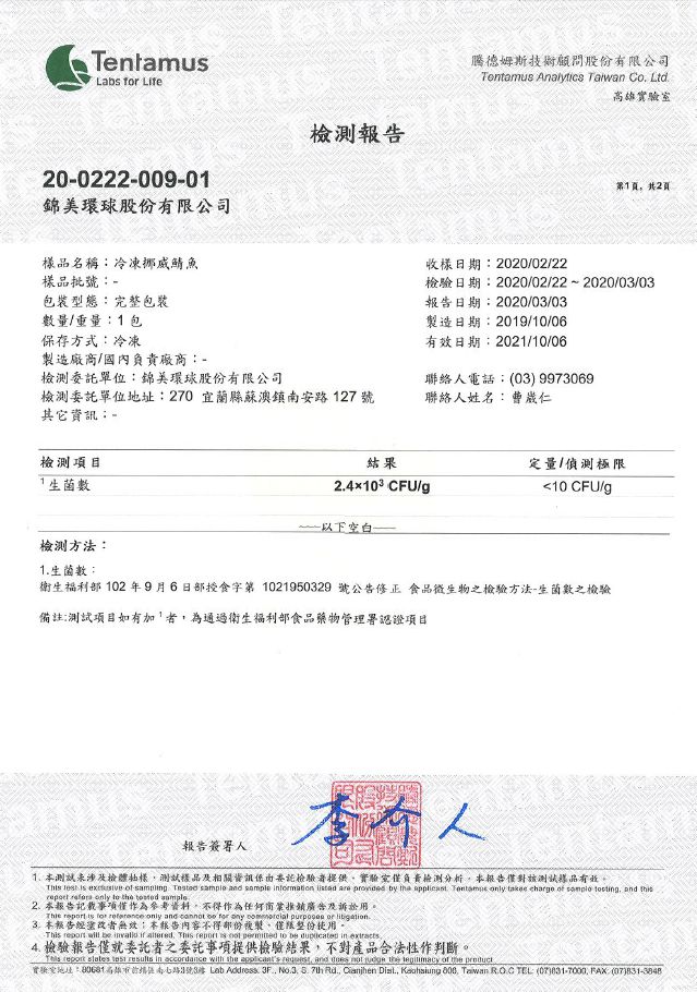 挪威鯖魚原料微生物檢驗報告p.2